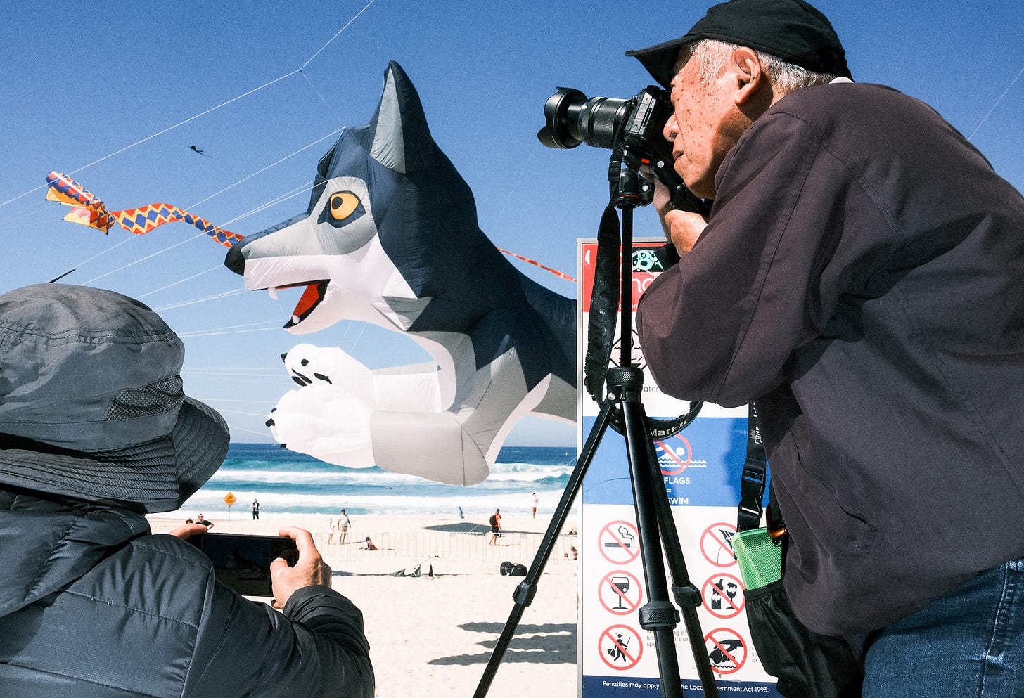 When I first met Julia Coddington, (a prominent Australian street photographer) she told me about Kite Festivals. A stage full of space, light and opportunities to see people at play, engaged in the moment. I started going to my local kite festivals and then to the larger ones like Festival of the Winds at Bondi.