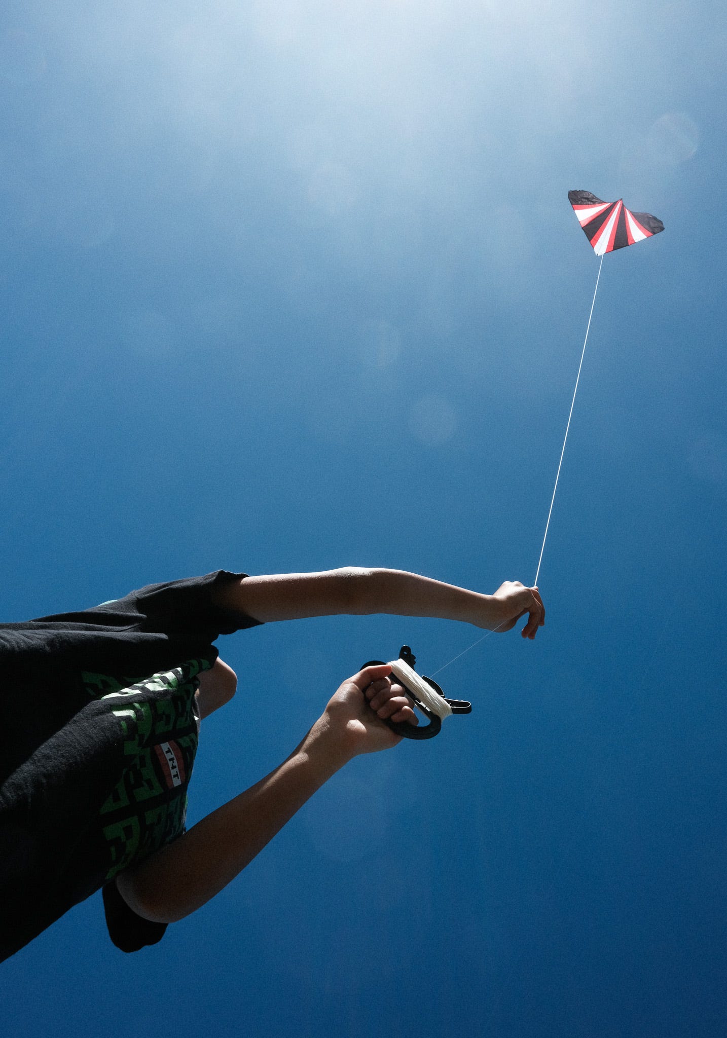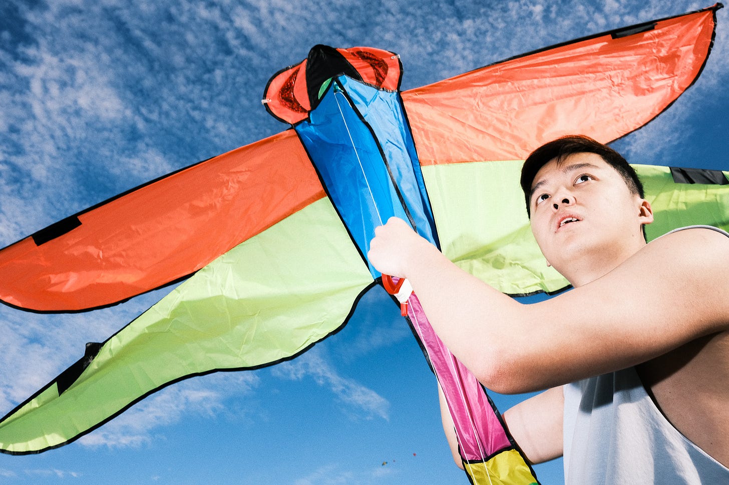 The use of negative space in kite shots is crucial. We have a wonderful opportunity to practice composition with the sky as our frame. I like to shoot from low angles and try to keep the sky clear so I can work on where I will place the design elements.